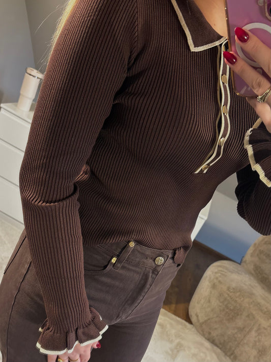 Top met ruffels - Chocolate